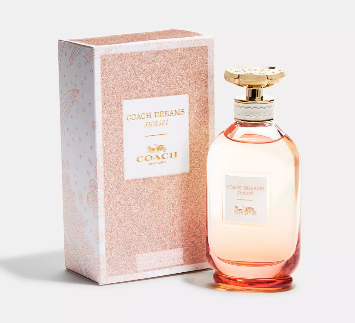 Coach Dreams Sunset is a fresh floral-and-woody, free-spirited fragrance inspired by the golden hours of dusk when possibilities are always on the horizon. It opens with fruity notes of pear and bergamot, revealing a heart of jasmine flowers before drying down to warm Tonka bean and vanilla base note.